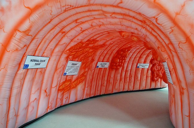Contributions of LSU Health New Orleans School of Public Health faculty and staff include a giant, inflatable colon, which people can walk through and learn about colon cancer and screening, information about breast and cervical cancer early detection and screening services, as well as educational materials about prevention and early detection. The giant walk-through colon is expected to be located on the concourse, and faculty and staff will also be available to answer questions at a table with printed materials.
