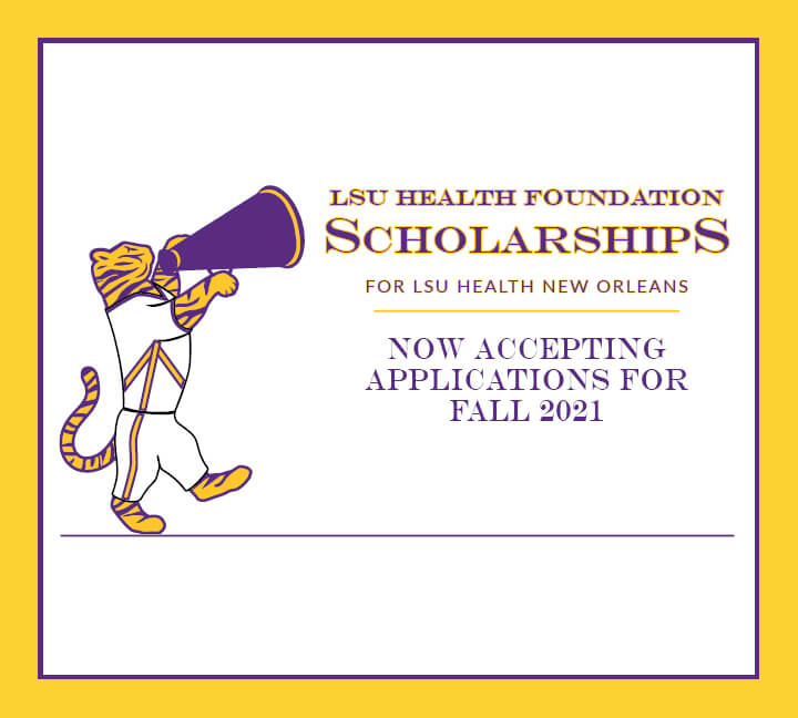 LSU Health is excited to share the launch of the LSU Health Foundation’s new scholarship application website! The foundation fundraises from our generous donors to provide numerous scholarships each academic year for our students. Foundation scholarships are in addition to scholarships offered by the various schools of LSU Health, have specified criteria, and will be reviewed by a selection committee.