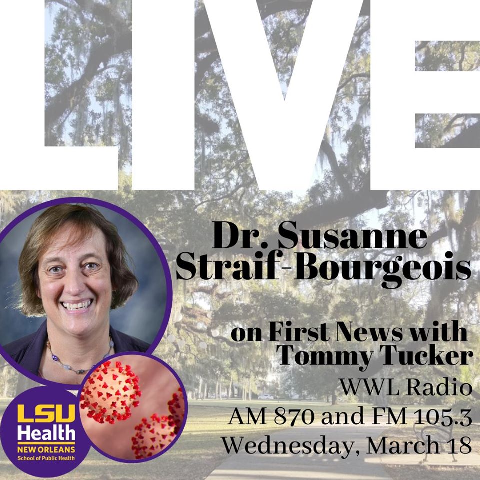 Our very own Dr. Susanne Straif-Bourgeouis will be giving her expert take on what New Orleans needs to do in the face of the Covid-19 pandemic. Make sure to check out her LIVE interview on WWL (AM 870 and FM 105.3) Wednesday morning during First News with Tommy Tucker.